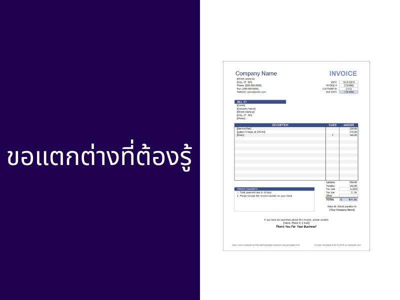 - หน้าที่หลัก: แจ้งจำนวนเงินที่ต้องชำระ, รายละเอียดสินค้า/บริการ, เงื่อนไขการจ่ายเงิน แต่ ยังไม่สามารถนำไปใช้หักภาษีได้