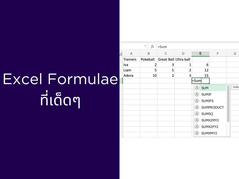 ใช้สำหรับรวมตัวเลขในช่วงที่กำหนด เช่น ยอดขาย ยอดค่าใช้จ่ายทั้งหมด