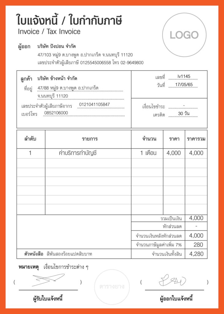 - ใบแจ้งหนี้: ออกทันทีหลังส่งมอบสินค้า หรือเสร็จสิ้นการให้บริการ